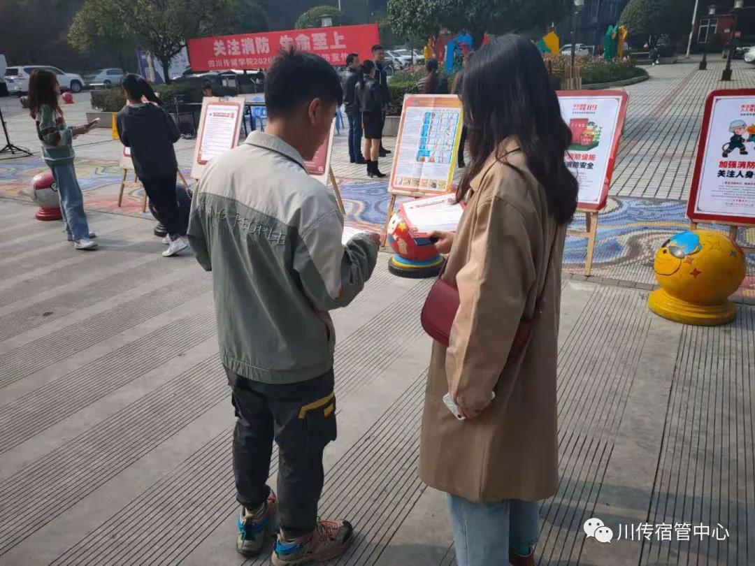 本次活动由以下几个内容组成:1.张贴消防宣传海报。2.分发消防宣传单。3.小广场展示宿舍违规电器。4.志愿者向各公寓学生普及消防知识。