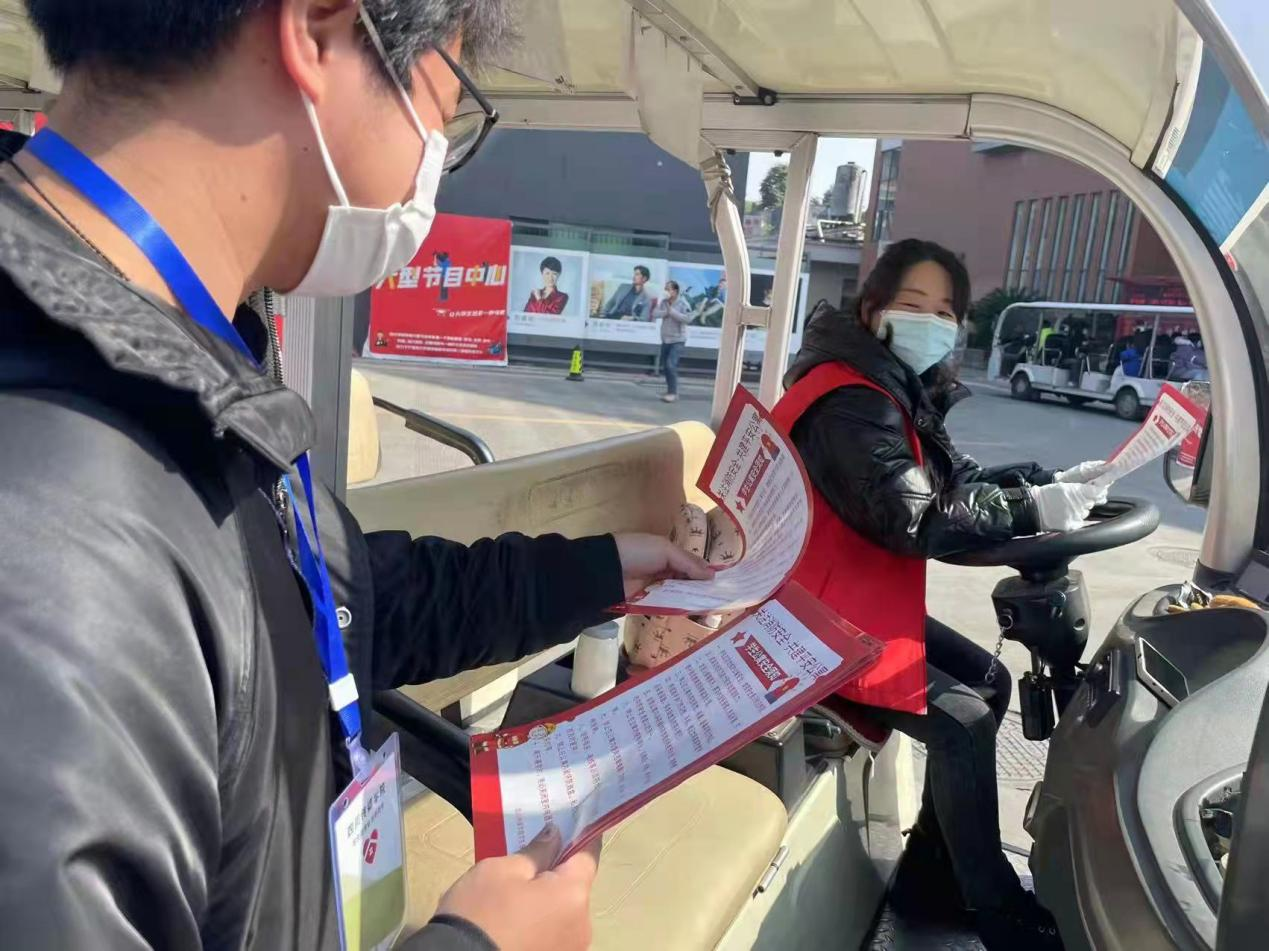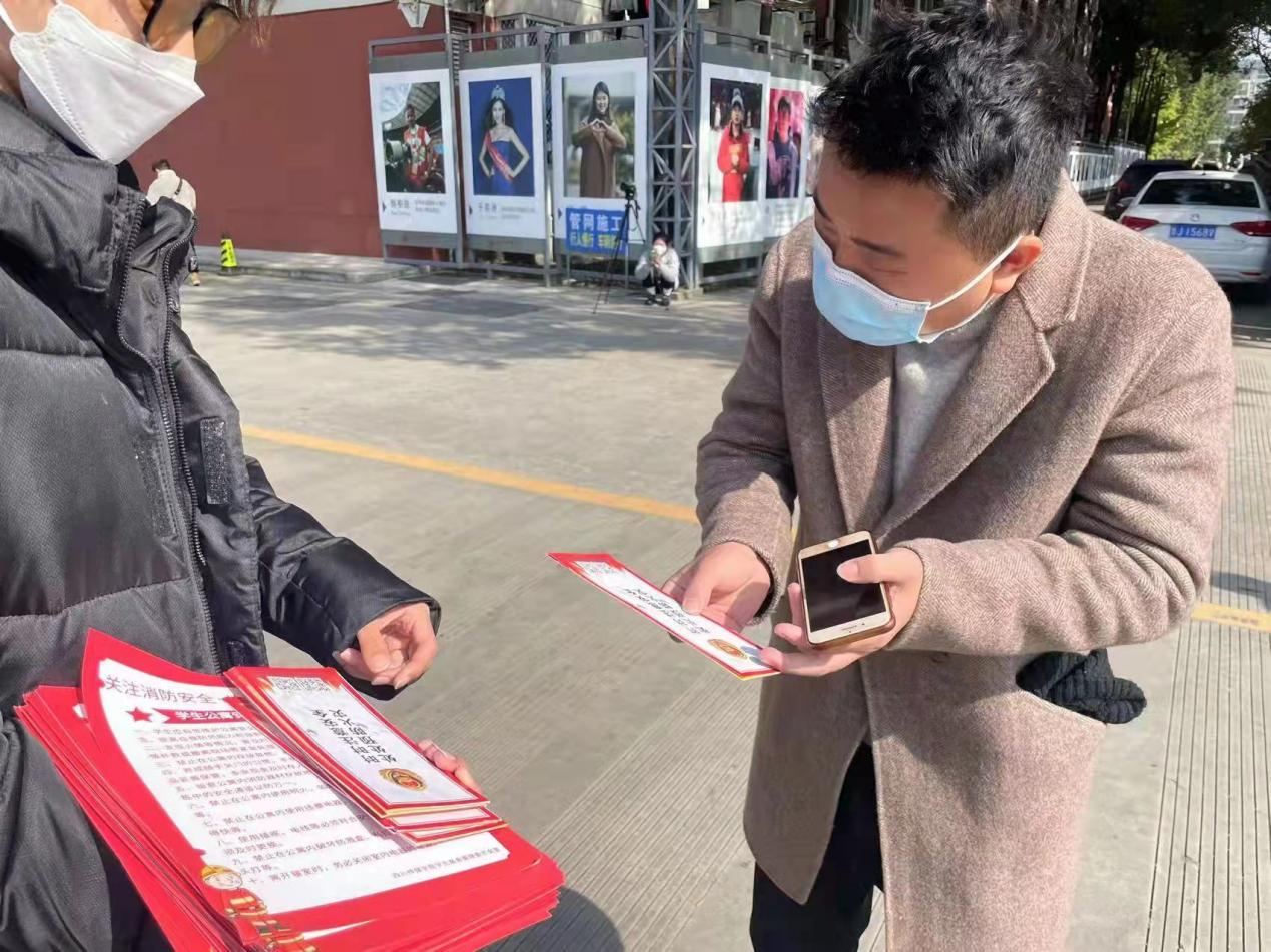 学生宿舍管理委员会干事给学校工作者发放消防知识传单