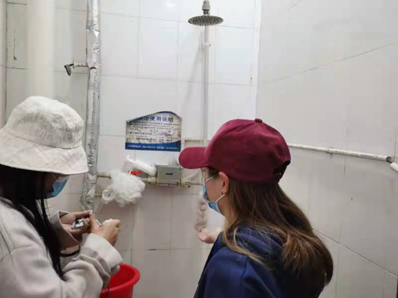宿管中心主任黄华老师协同后勤公司赵石磊老师与淋浴公司商家负责人、学生宿管委员会学生成员等对学生提出寝室淋浴水温过低和周五延长淋浴时间问题进行讨论,经商议决定周五晚淋浴时间延长到24点,并深入学生公寓现场对淋浴水温进行测试,检查热水管道保温膜情况。根据实时天气温度调整淋浴水的温度,满足同学们洗澡需求。