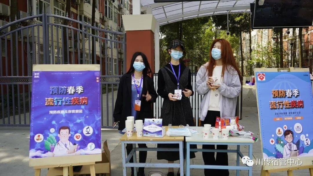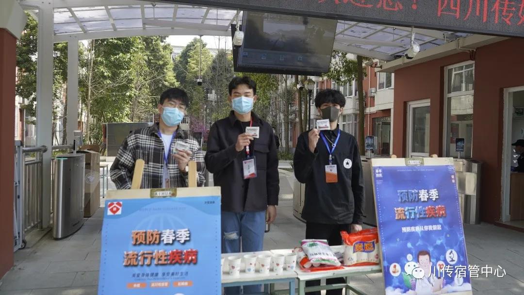 为了向同学们全面普及关于春季流行性疾病的相关知识,学生宿舍管理委员会特地在校区内开展了“预防春季流行性疾病”的活动。学生宿舍管理委员会的同学们在学生宿舍门前发放春季流行性疾病宣传单并且赠送板蓝根冲剂,让川传学子们在校园中也能时刻感受到温暖。