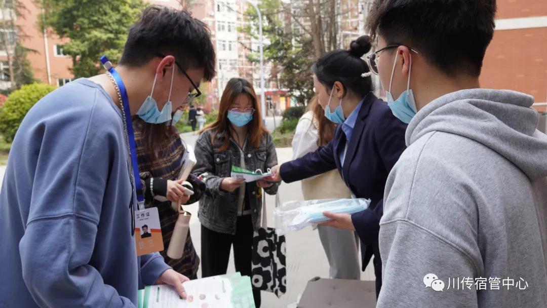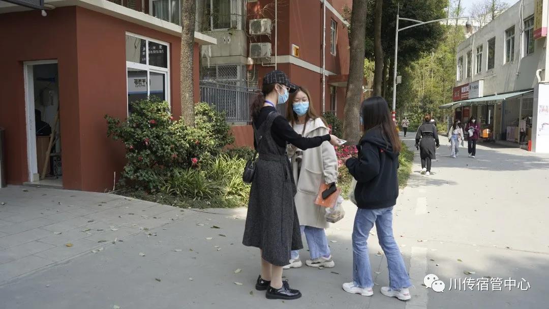 虽然疫情已经缓解,但防疫工作仍然不能松懈,为了使同学们能够以健康的体魄,愉快的心情投入到学习中,学生宿舍管理委员会的同学们在向川传学子进行流行性疾病的宣传时,还不忘给未带口罩的同学发放口罩。
