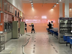 消防无小事,安全大于天。新学年伊始,为增强我校食堂员工预防突发火灾事故的安全意识,保卫处联合后勤管理处与郫都区消防救援大队协作开展消防安全演练活动。此前,各参演部门就此次消防演练开展专项会议讨论并制定详细演练方案,随后部门负责人带领消防总队检查食堂消防设备、通道、用火是否符合规范。为后续演练的顺利开展打好基础。