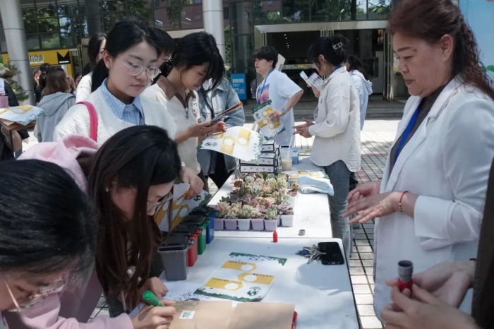 并拍照打卡进行宣传,让更多未来到现场的同学了解世界地球日。